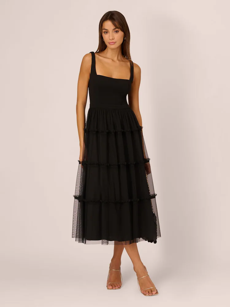 Vestido negro de punto y malla de Adrianna by Adrianna Papell