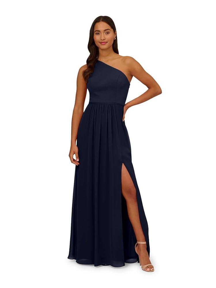 Vestido de georgette azul marino de un solo hombro de Adrianna Papell