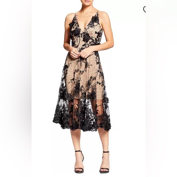 Vestido de encaje con apliques florales Audrey de Dress the Population en negro y nude