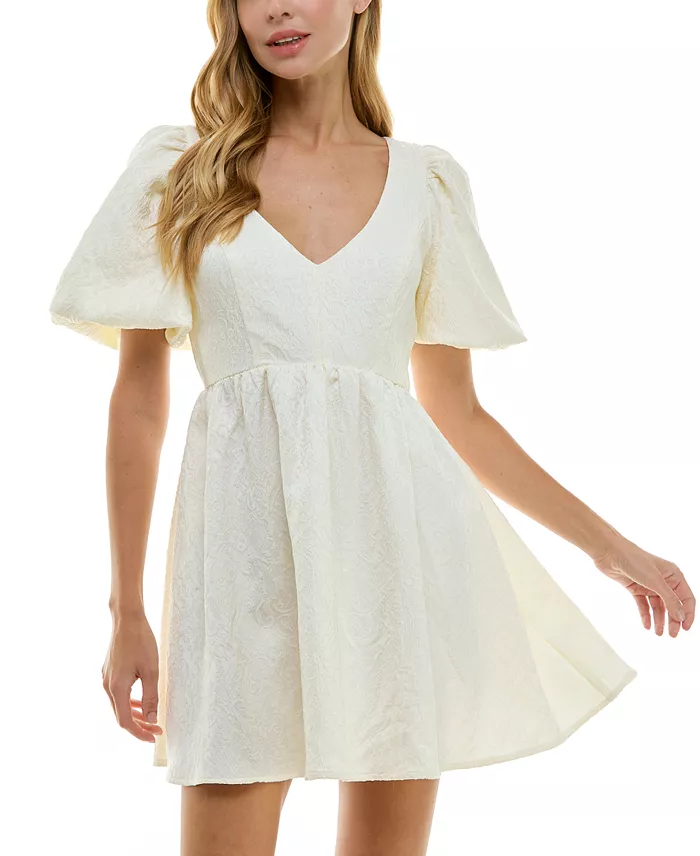 Vestido ajustado y acampanado con mangas globo de jacquard para jóvenes