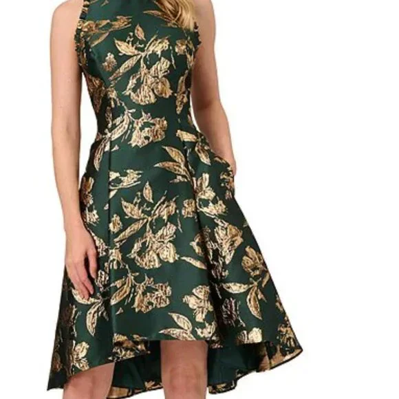 ADRIANNA PAPELL Vestido Jacquard con Volantes Hunter TALLA 14