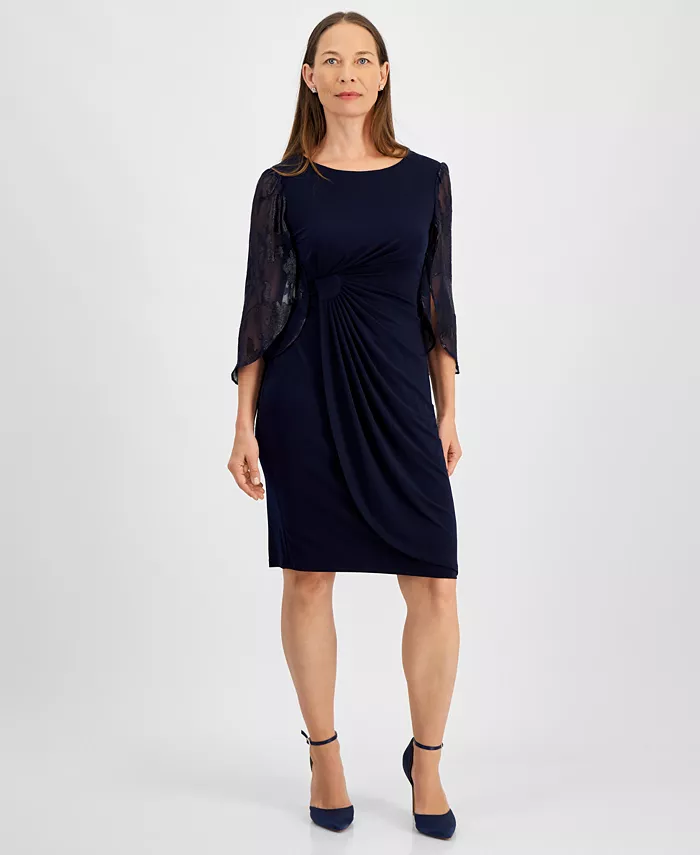 Una opción elegante para tu próximo cóctel, este vestido petite de Connected presenta mangas de encaje y un ingenioso plisado que le da un toque más atractivo.