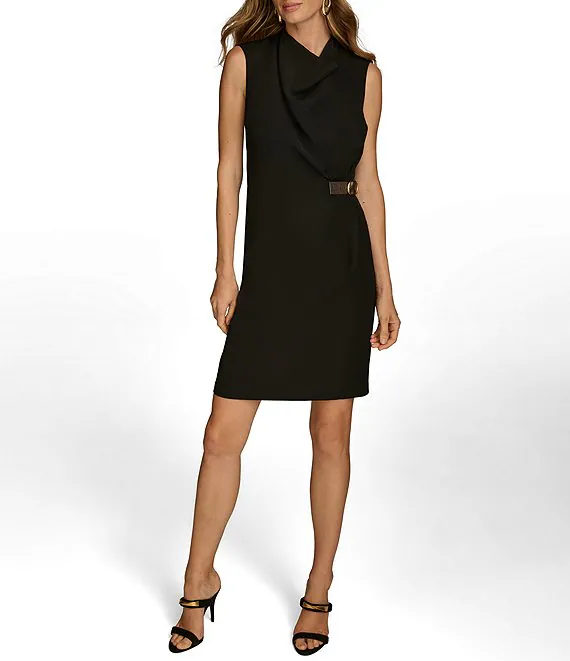 Vestido tubo sin mangas con cuello vuelto y sarga sedosa