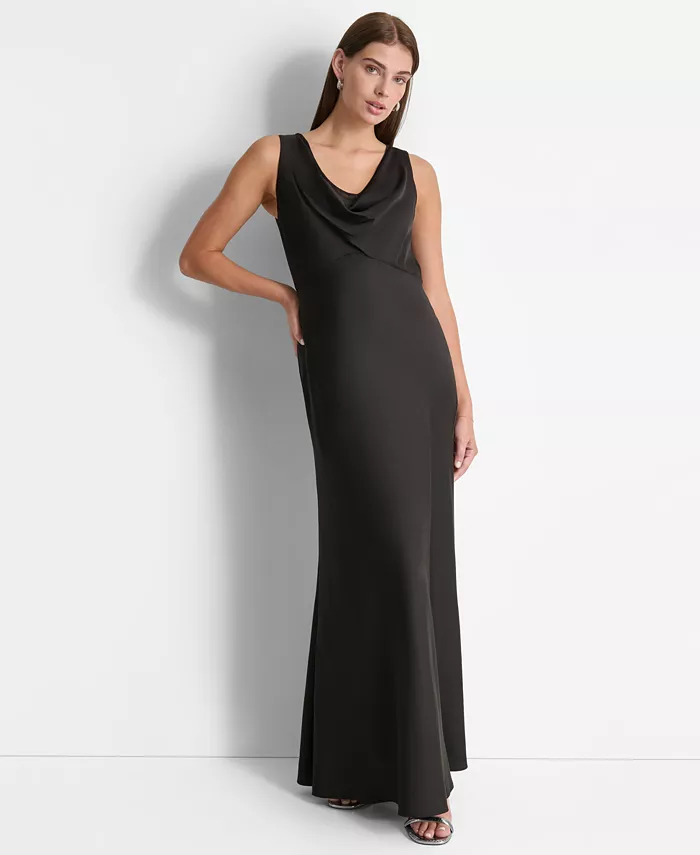 Luce un look elegante y chic al instante con el vestido sin mangas de color liso de DKNY, un diseño de cuello vuelto elegantemente drapeado, atemporal y moderno a la vez.