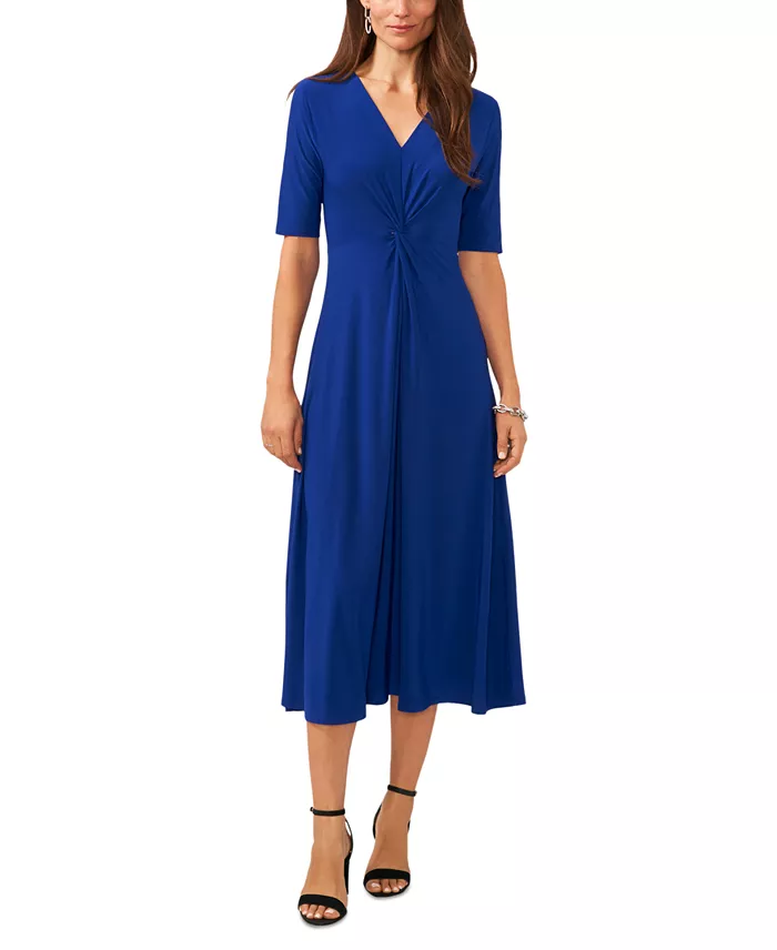 Vestido midi con escote en V, mangas al codo y delantero torcido para mujer